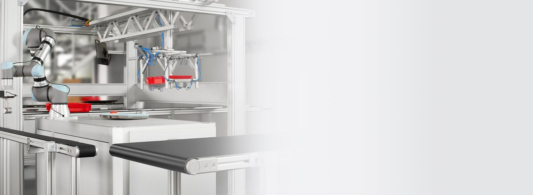Double Timing Belt Conveyor 8 40 D features two high-performance timing belts that run in sync. It is available in overall widths of up to 2400 mm. This ensures heavy, inherently stable products can be efficiently transported. Side guides give the durable timing belt additional support for lateral forces and carefully keep it on track.